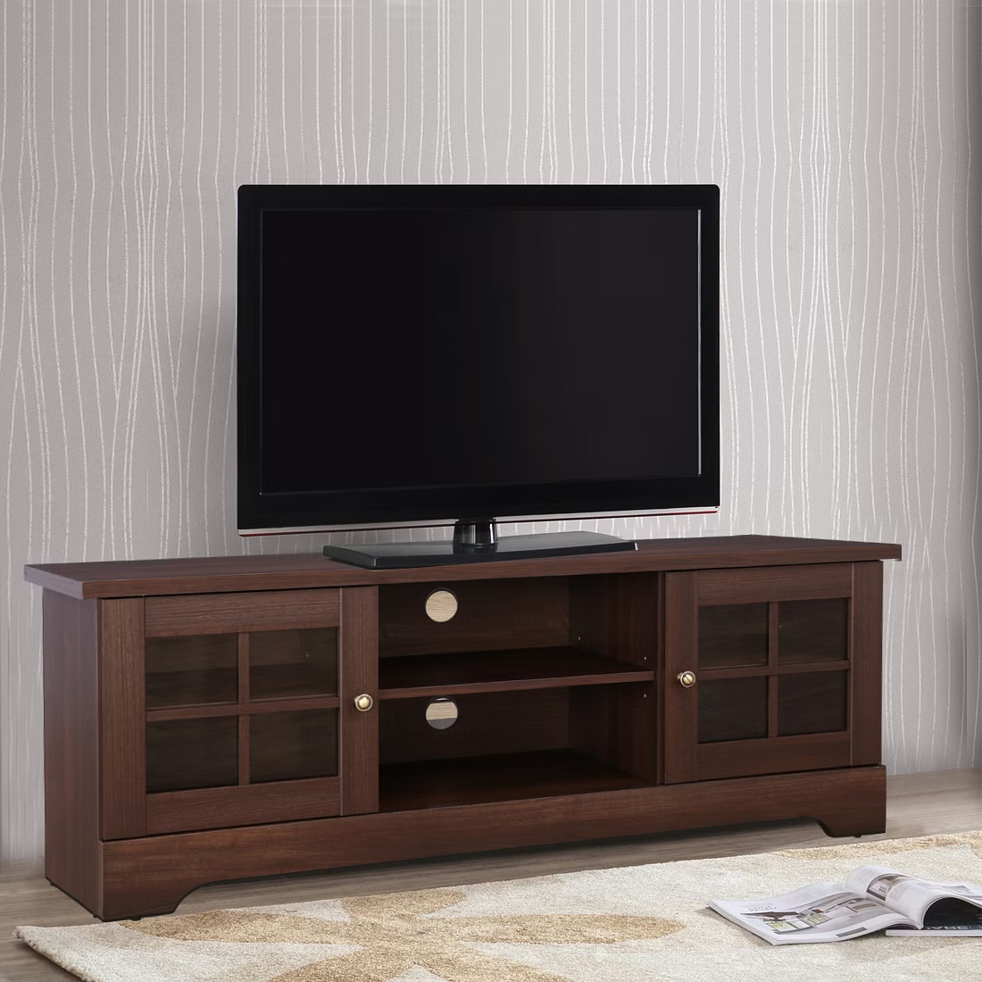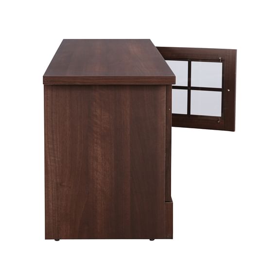 The Holly TV unit designed in countryside structural elements exudes warmth to the space with its deep natural wood grain finish. Constructed for simplicity with linear shapes and lines, the TV unit offer ample open and closed storage space to store your electrical supplies, quick knick knacks, favourite curios, etc. With open top shelf, place your TV either on the shelf or wall mount it.