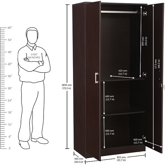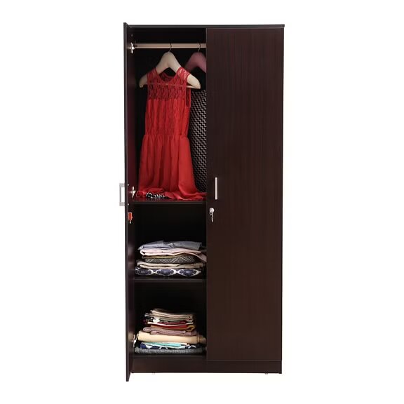 The environment friendly, engineered wood, Prime two door wardrobe with ergonomic functional fittings and user-centric design fits seamlessly in any bedroom. It’s elegant with natural wood grain wenge finish, clean structural lines and sturdy form.