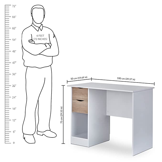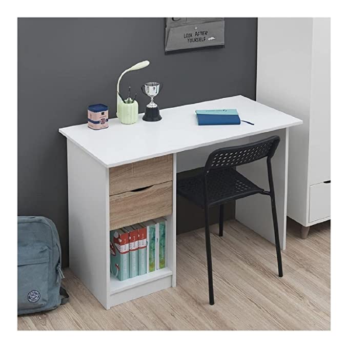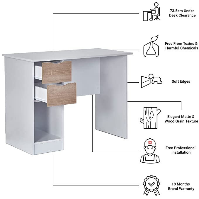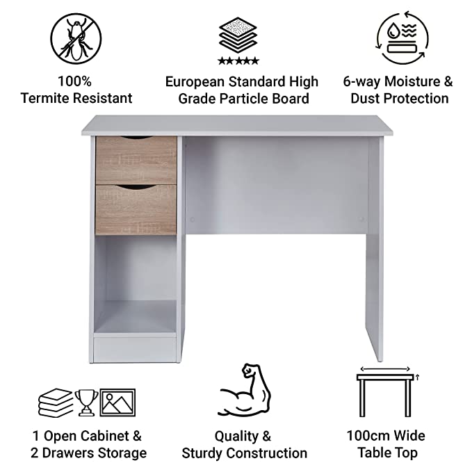 Laptop & Computer Table, White & Sonoma Oak (2 Drawers & 1 Book Shelf Multipurpose Storage, Termite Free, Non-Toxic Home Office Furniture)