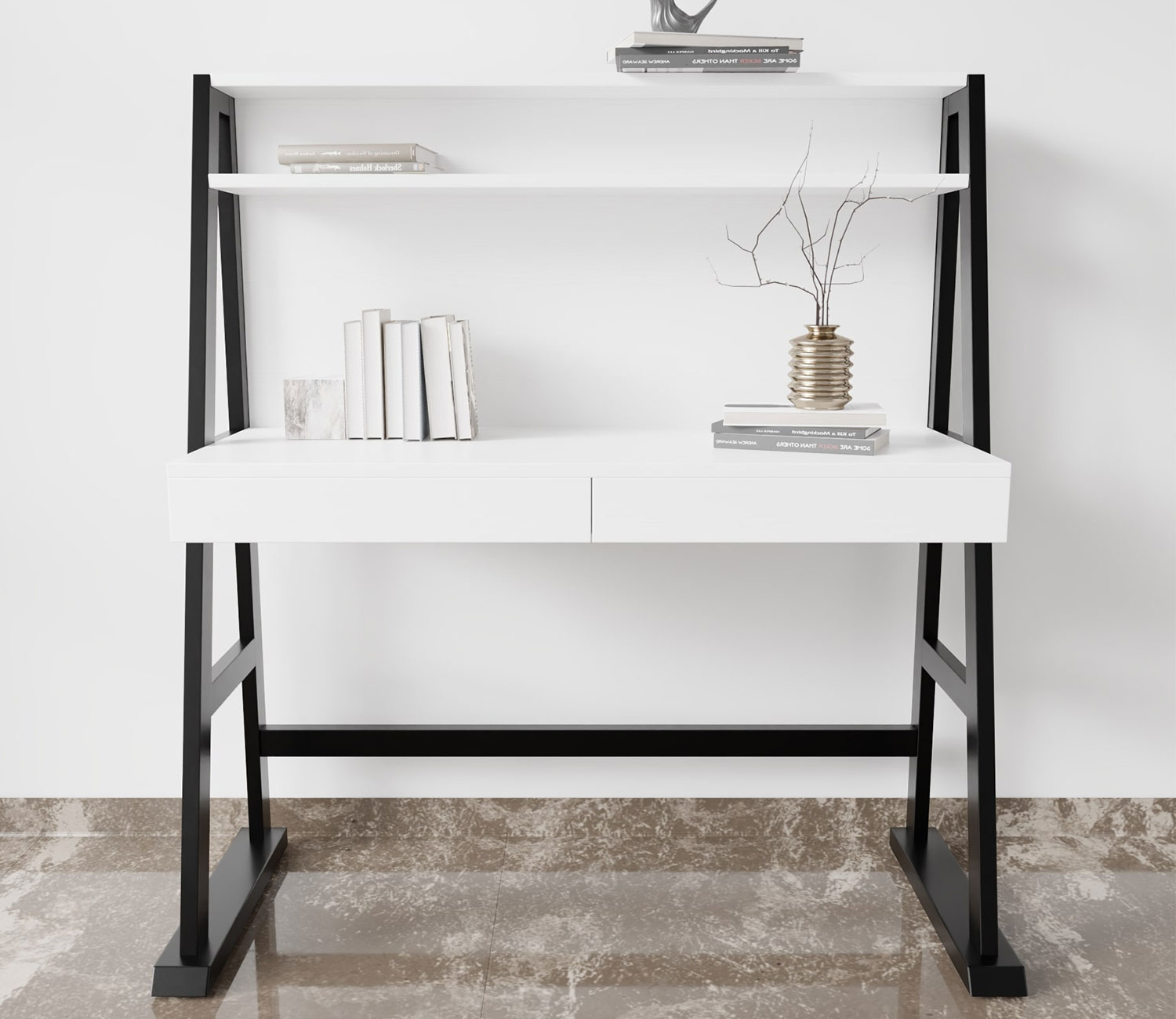 Generic Name : Tulip Engineered Wood Study Table With Metal Legs (White)