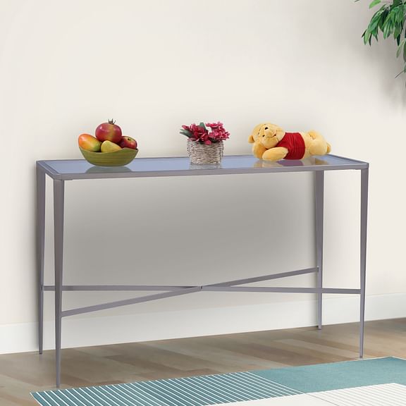 Be the first to review “Venezia Glass Top Console Table in Brushed Steel Colour”