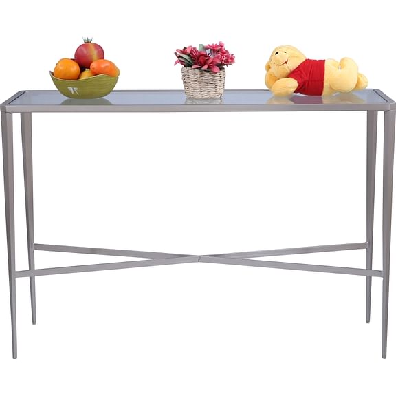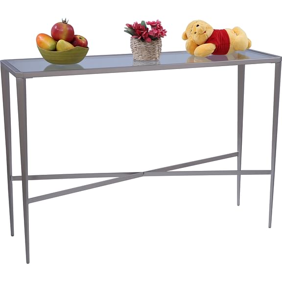 Venezia Glass Top Console Table in Brushed Steel Colour